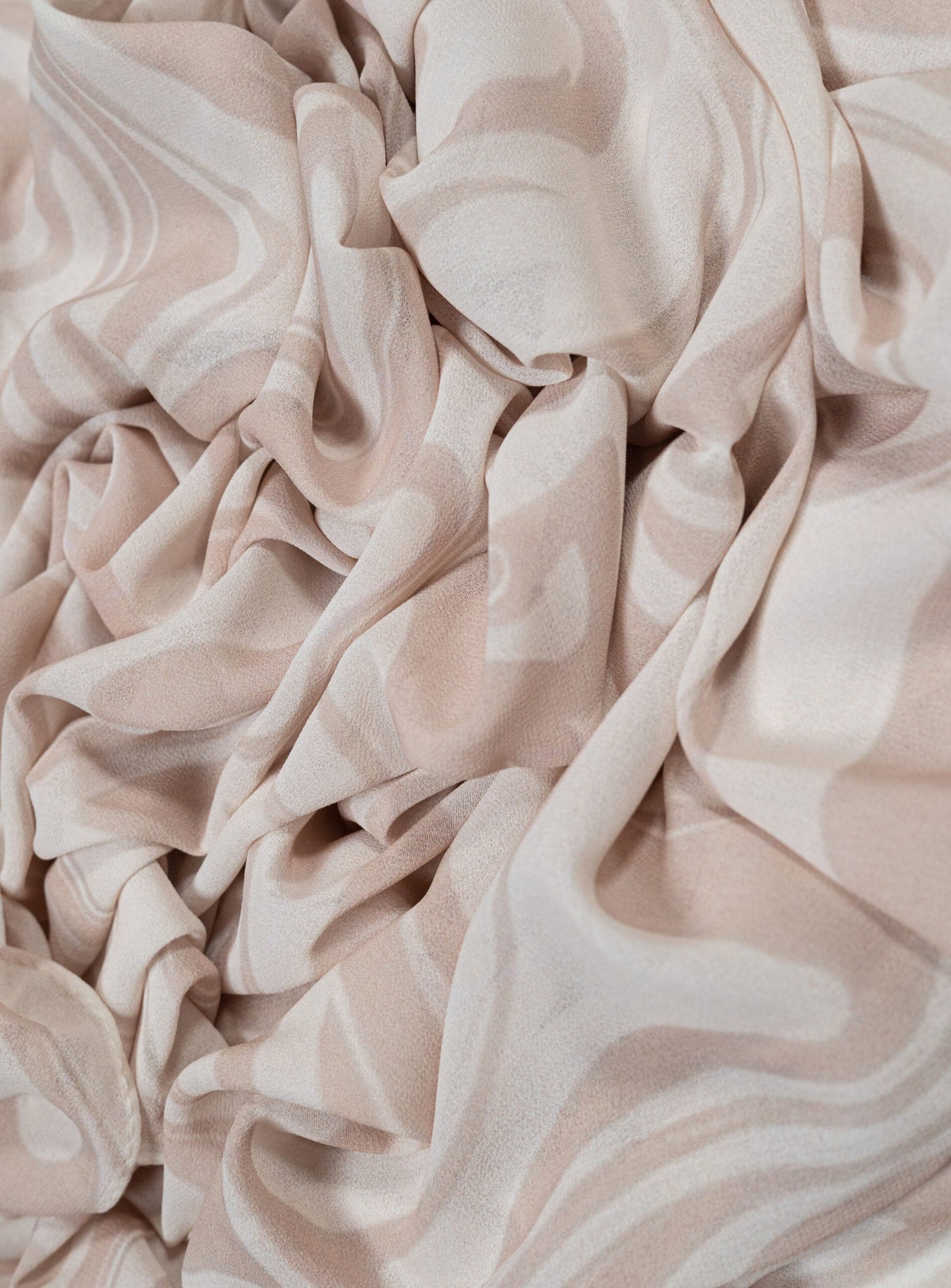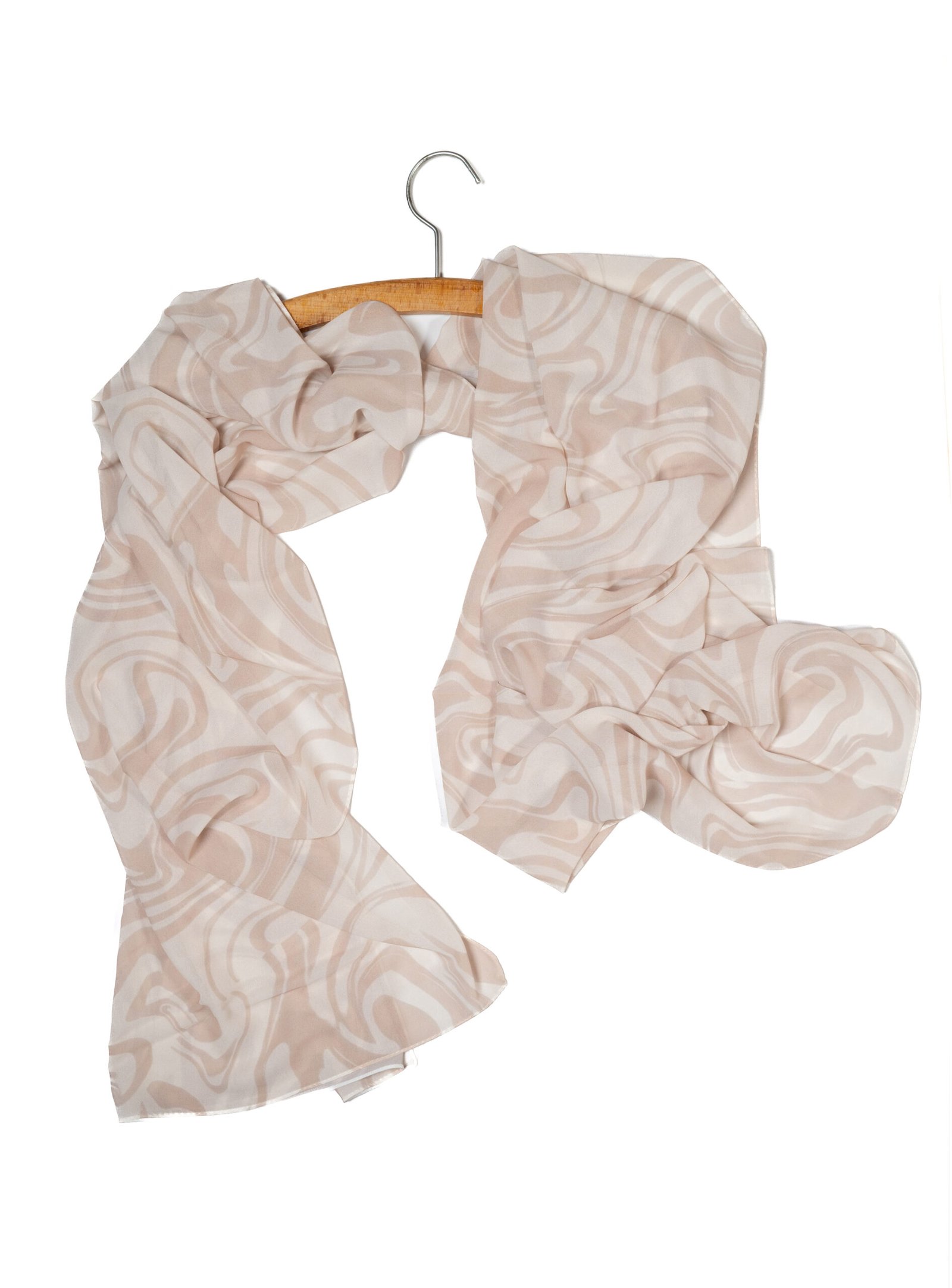 Elegant Drape: The chiffon falls into soft, graceful folds, allowing the subtle beige swirls to frame your face beautifully.