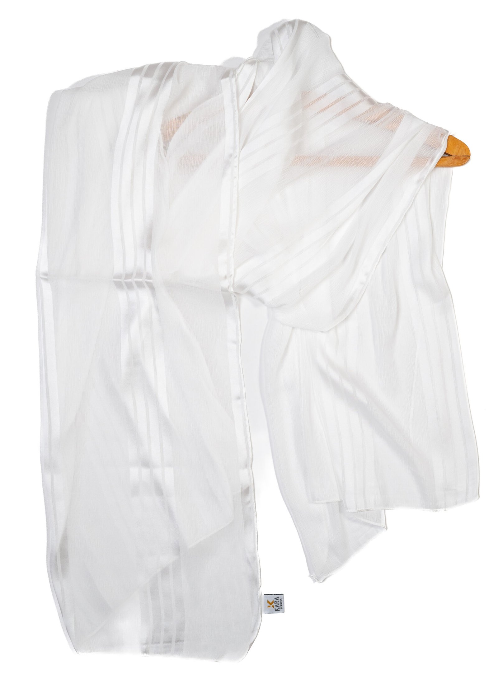 Pristine Beauty for Every Occasion Every wardrobe needs the perfect white hijab, but the Crisp White Striped Satin Modal Hijab takes this essential staple to an entirely new level of luxury. Whether you are stepping into a boardroom, attending a summer garden party, or celebrating your Katb Ketab, this piece delivers a flawless, angelic glow with unparalleled comfort.