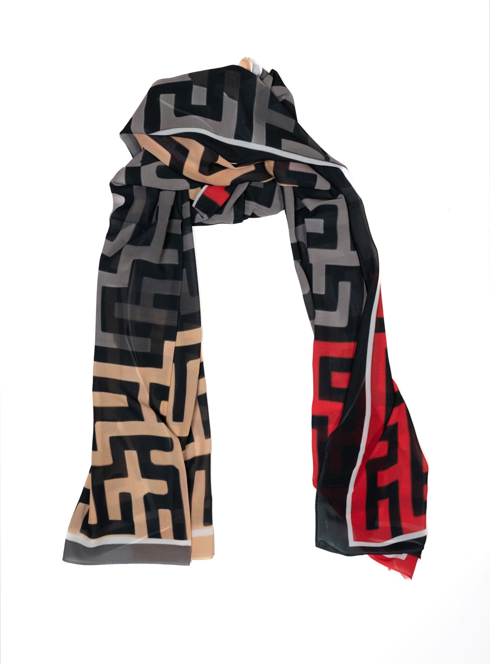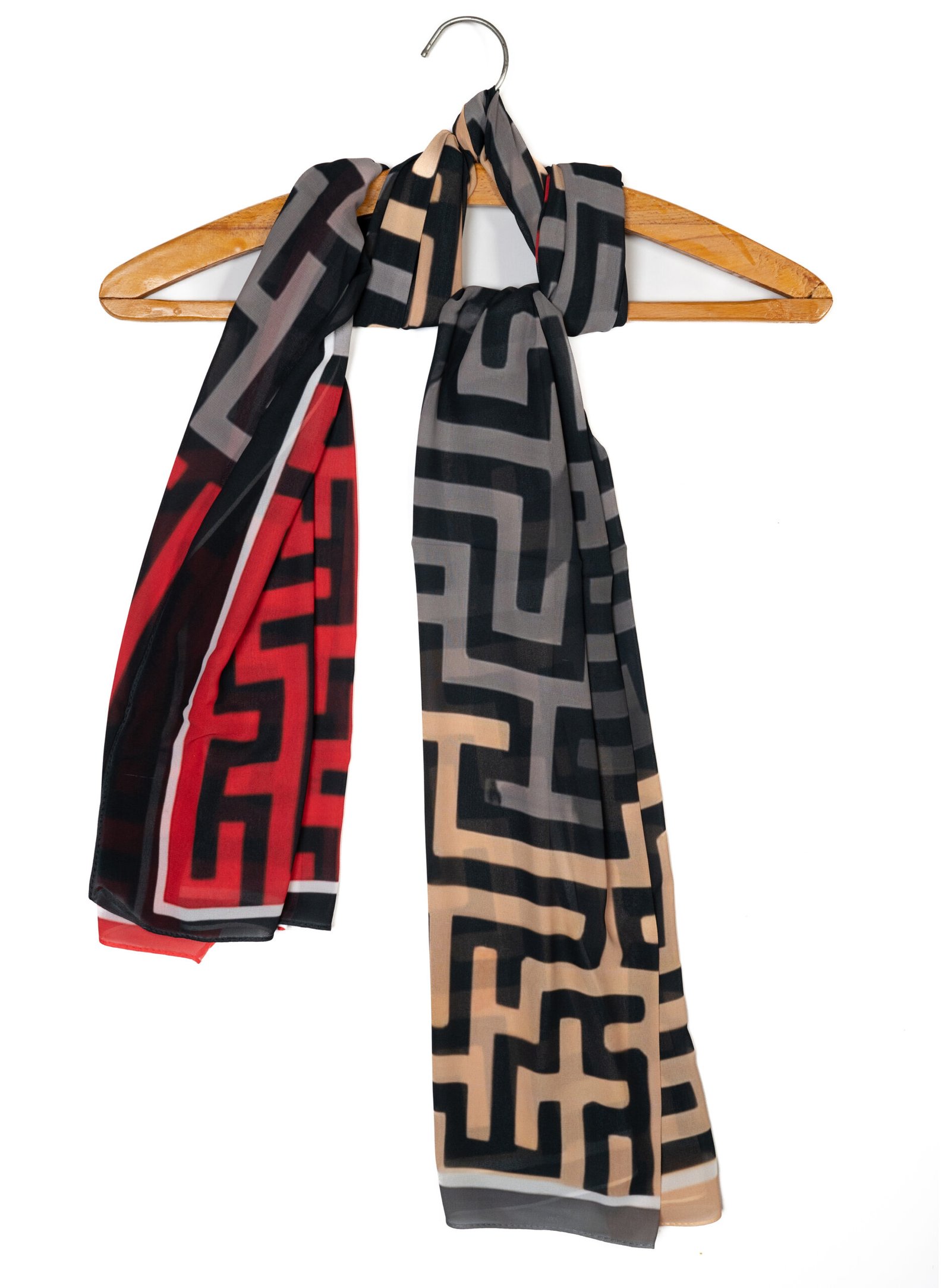 Modern Structure, Bold Impact Navigate your day with confidence in the Labyrinth Hijab. This design is a celebration of modern geometry, featuring a striking maze-like pattern that interlocks sharp lines and right angles. It is the ultimate accessory for the woman who loves structure, precision, and a touch of architectural flair in her wardrobe.