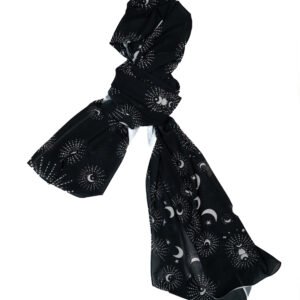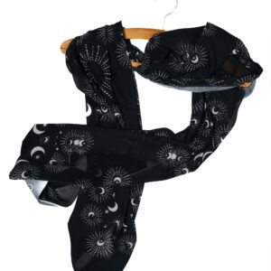Written in the Stars Bring a touch of cosmic magic to your everyday wardrobe with the Moon Cycle Hijab. Inspired by the quiet beauty of a clear midnight sky, this design captures the highly sought-after celestial trend with a sophisticated, modest twist. It is the perfect piece for the woman who loves bold contrasts and dreamy, artistic patterns.