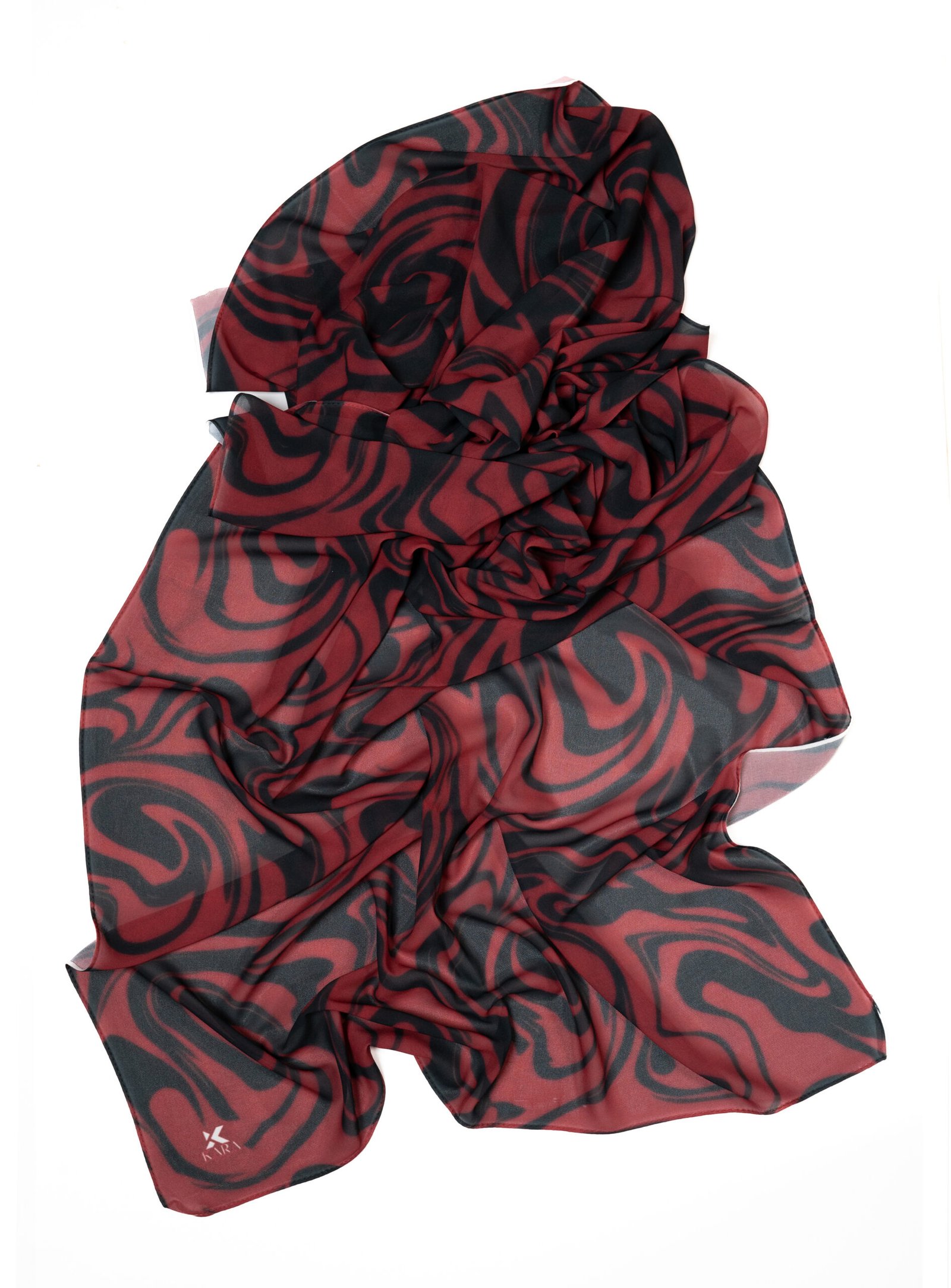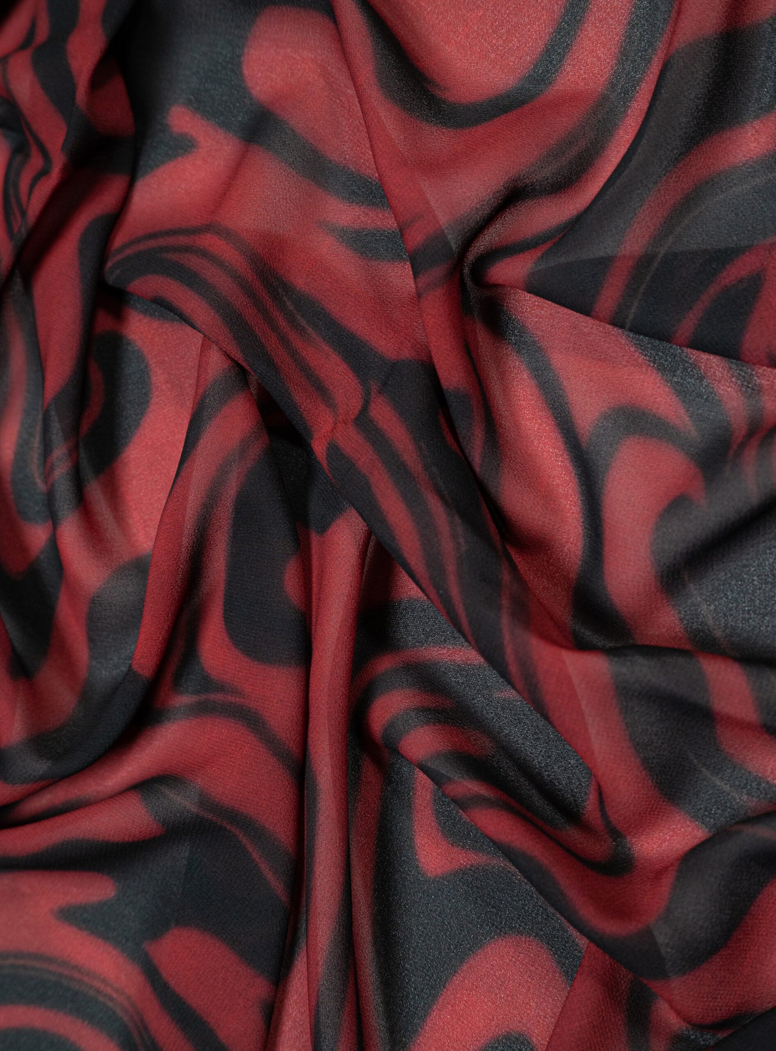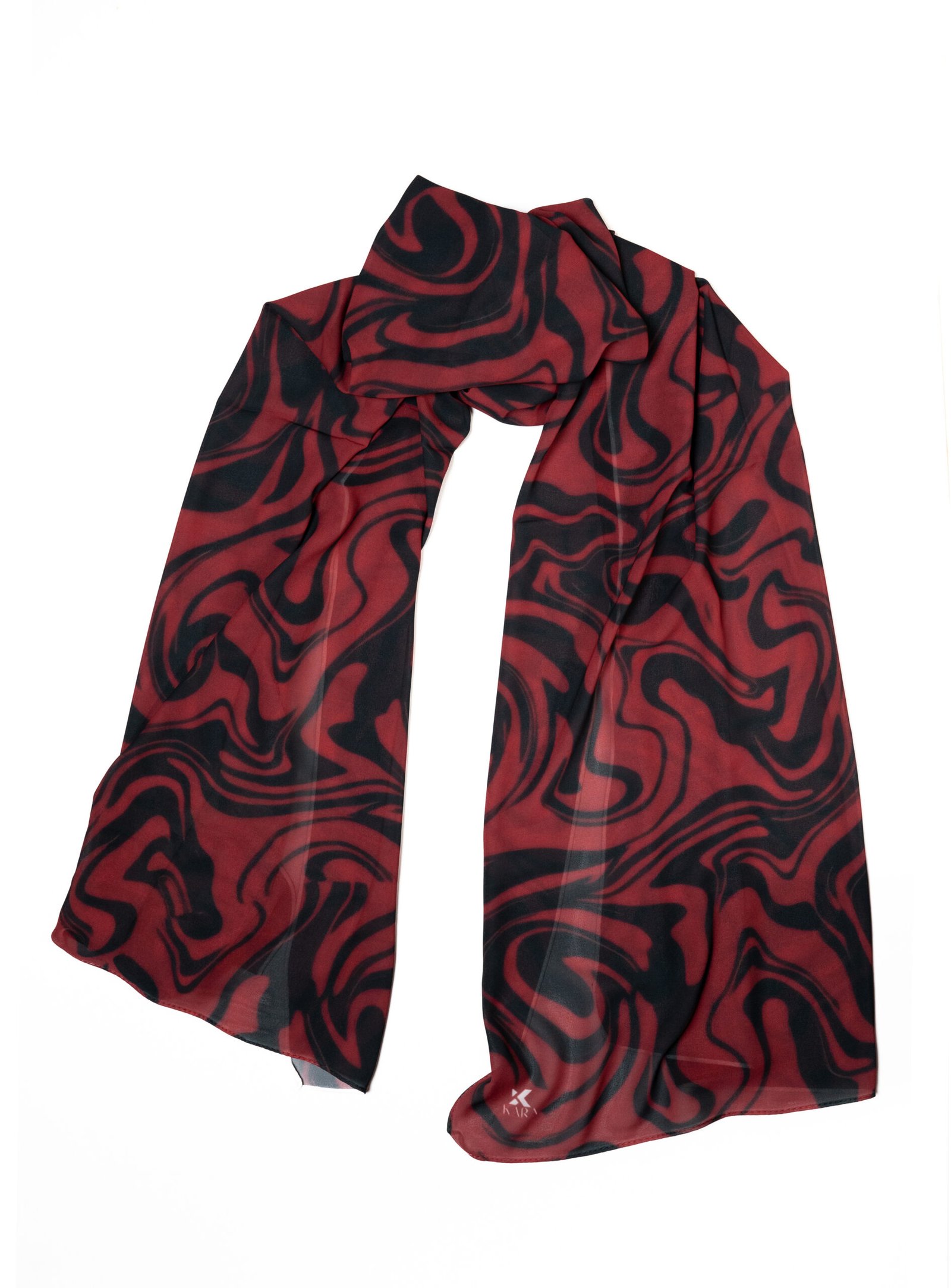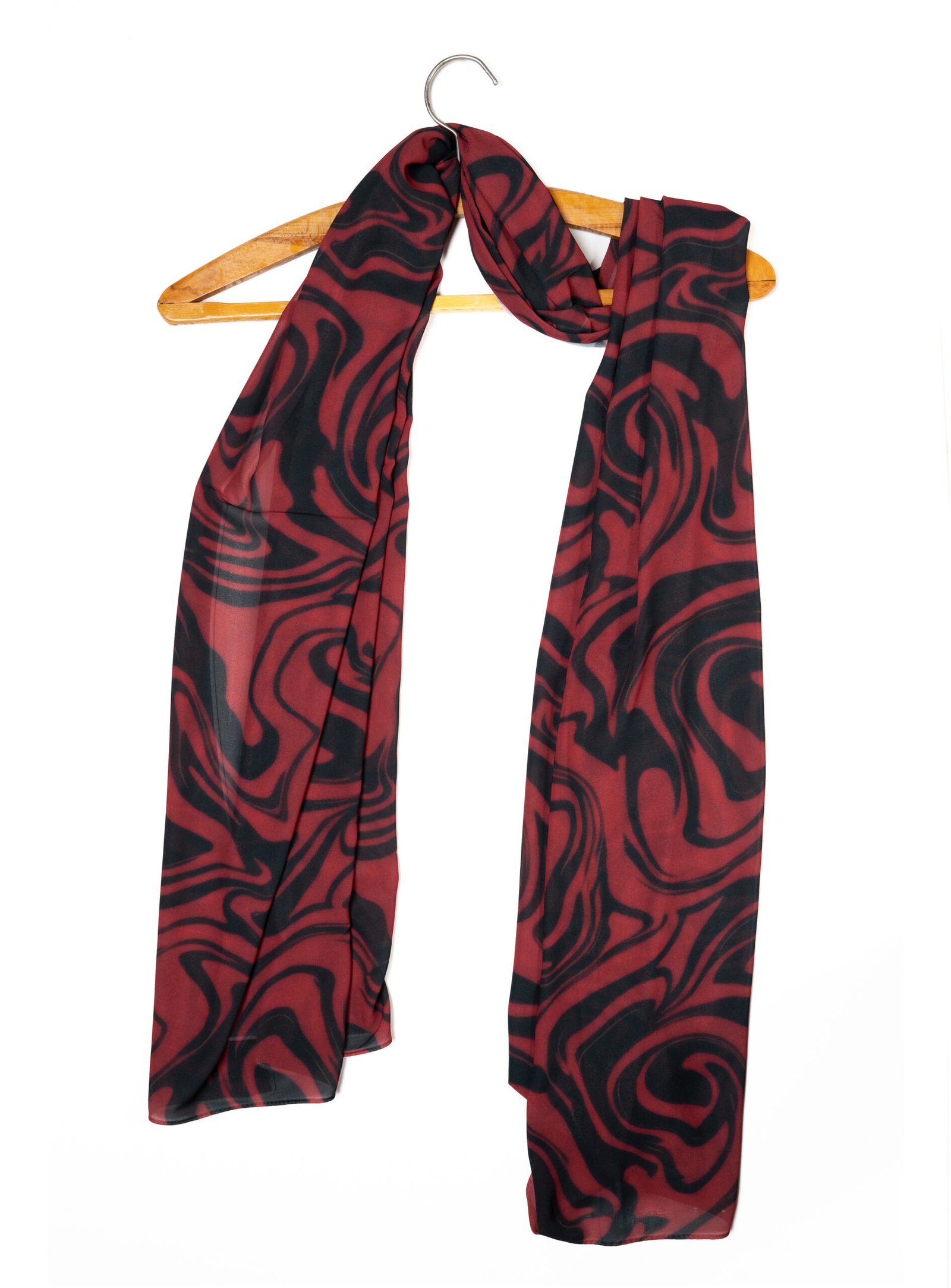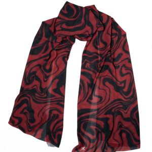 • Beautiful Drape: The chiffon flows naturally, allowing the sweeping red and black waves to interlock dynamically however you choose to wrap it.